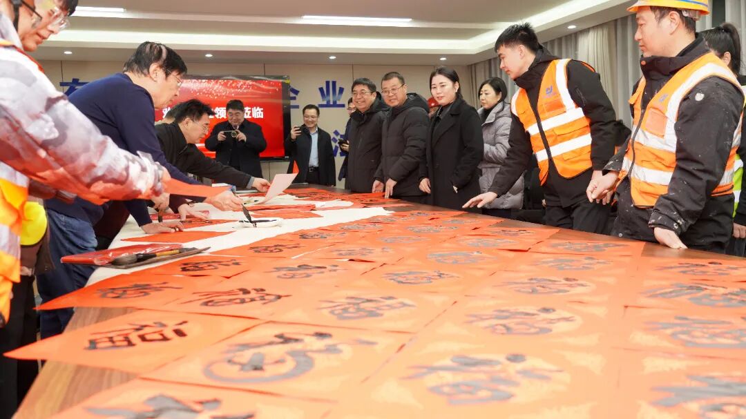 新春佳节到来之际保定市总工会有关领导走进集团在施项目向一线员工送去节日的关怀和问候2月10日,恰逢中国农历小年,市总工会党组副书记、副主席、一级调研员文霖带领保定市书法家协会的书法家们来到河大研究生教学实验楼和公寓建设项目工地,开展“送万福 进万家”活动。活动现场墨香四溢,暖意洋洋。书法家们挥毫泼墨,将一幅幅饱含吉祥寓意的春联和一个个福字送到一线员工手中。现场欢声笑语,洋溢着浓浓的年味儿。2月12...